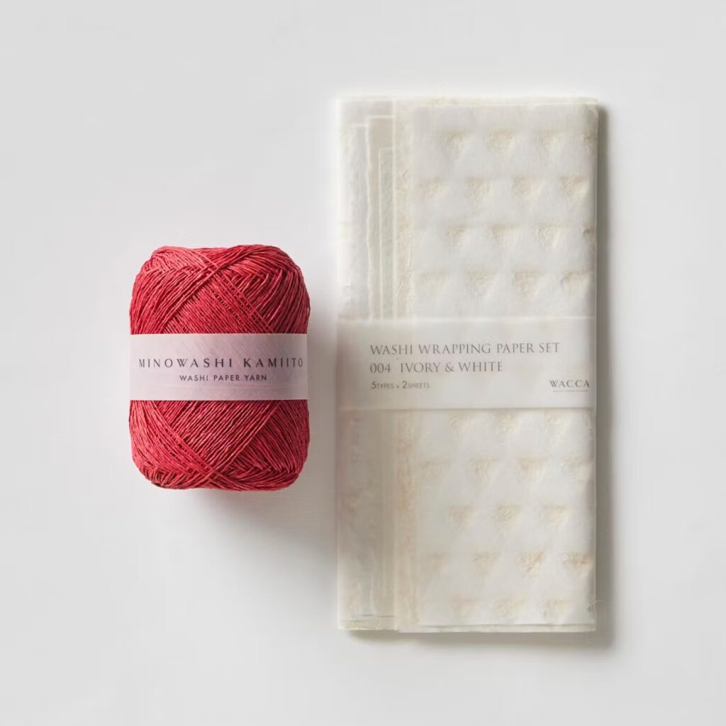 和紙でできた赤い糸がアクセントになる、和にも洋にもぴったりなシートと糸のラッピングセットです。