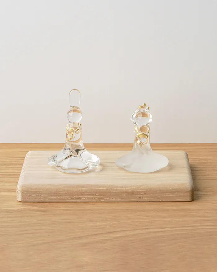 そんなハリオランプファクトリーさんで制作される雛人形は大きさが台座が約15×10cm、お雛様の高さは約7cmほどで場所を選ばず飾れるコンパクトさ。