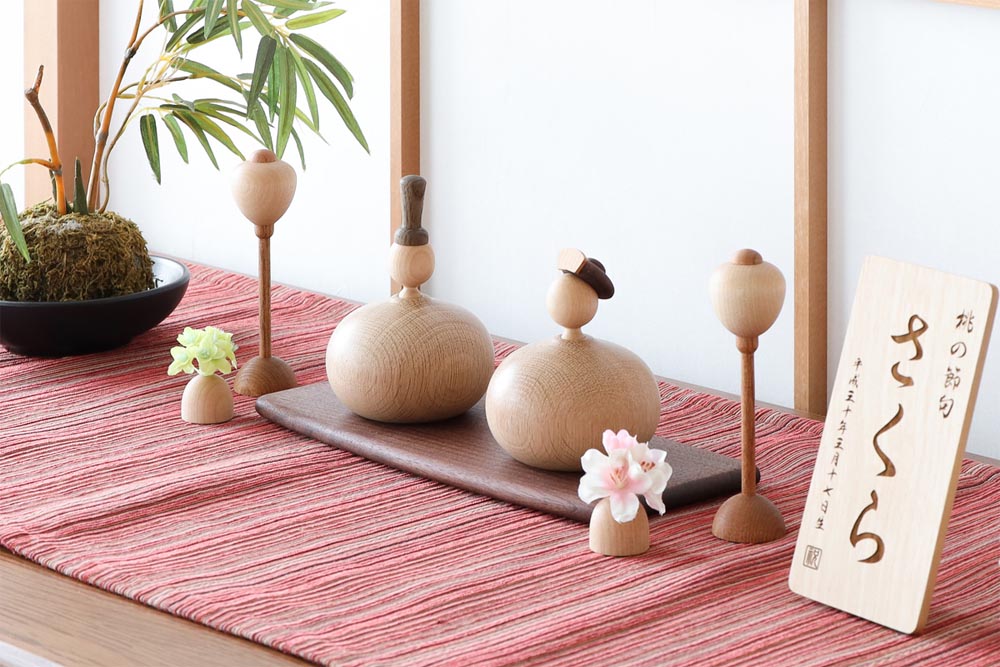 美しい曲線からは職人の技術や洗練された上品さが感じられますが、同時に木材だからこそのほっこりとした可愛さも同時に感じられ、2面性のある魅力を持つお雛様です。